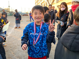 残念ながら、決勝が見れなかったので、その前のハイライトは準決ですかね。予選1位対決を2対0から、2対3と逆転され嫌な流れで迎えた準決勝。エイタツのゴール前の粘りからケイタのロングシュート、キョウスケ&エイタツのワンツーからの崩しの得点、どちらも美しいゴールで、前半を2対0で終了。前の試合の逆転劇が脳裏に浮かぶ中、ヘッドコーチは迷わず、4.5年中心のメンバーに後半から交代。危ないシーンも作られながらも皆で粘って2対0で勝利!!決勝は予選のリベンジを果たし、優勝!来月の新人戦を見据えて、新メンバーも躍動し、有意義な大会でしたね。