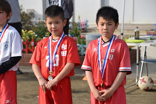 久しぶりの6人制という事と初戦は戦術ミス(これはコーチの責任)もあり、思うような試合運びが出来ませんでしたが、戦術及びフォーメーションの変更と足元にパスを出す際のパスの方向、トラップの方向を修正した事で徐々に自分達のサッカーが出来るようになり、いい形での得点も出ました。特に最終戦のキョウスケの得点は、パス数本で相手を崩し、センタリングからダイレクトシュートという理想の形での得点でした。
