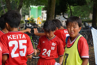 流石に何試合もこなす内に、少し身体が思い出したかな。特に杉九との初戦は寄せが早く、中盤を支配、えいたつからの縦パスも時折りょうたに入って、本日のベストゲームでした。相手キーパーのスーパーセーブに何点か阻まれたけれど、右、左から何度も崩し、観ていても久しぶりにワクワクする20分でした。