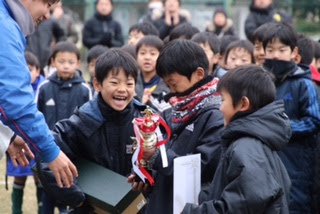 今日の大会優秀選手はえいとでした。常にゴールを狙いながらもディフェンスにもしっかり帰るプレーはさすがです。膝から下の早い振りからのシュートも惚れ惚れしました。