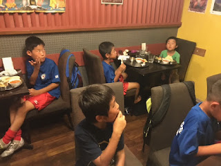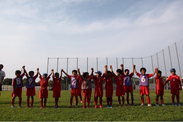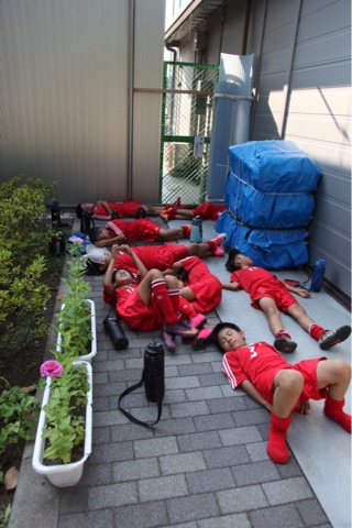 1試合目、2試合目は馴れない芝?にボールをとられ、パスもドリブルも上手くいかず、ほとんどチャンスが作れませんでした。危ない場面も、何とか凌ぐことができましたが、得点できないまま、暑さの中体力ばかりが奪われていく厳しい展開でした。