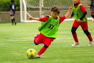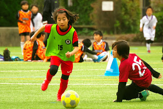 最初から真ん中を意識して欲しかったのですが、いつもながらエンジンがかかるのが遅く、前と後ろの距離感が遠く真ん中をドリブルでえぐられ、ディフェンスが対応しようと前にでたら裏へスルーパスを出される悪循環。攻めたい、ゴールをしたいのは分かるけど、前から相手を追えないといつも数的不利な状況でサッカーすることになっちゃうよ。相手は後ろから人数かけて攻めてきて、全員で連動して動いてくるからね。全員で攻めて、全員で守ってる。そのときには何をすればいいか、何を狙ったらいいか、みんな知っているよね。