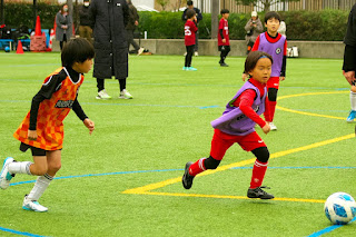 今日も安定のキープ力でした!せっかく一人で相手を二枚、三枚引きつけているんだから、囲まれる前にパスが出せたら味方は何枚フリーになってるかな?頭のイイぜんならすぐ分かるよね。ドリブルで抜き切るのが目的ではなく、ゴールを奪うのが目的だよね。抜けきる前にパスを出して、もらい直すプレーができれば、もっとそのドリブルが生きてくるよ。