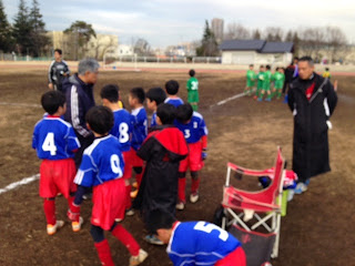 本日は3年生の松原カップに参加しました。予想どおりの強豪揃いで、結果は全敗でしたが、予想以上に頑張れた部分もあり、これからのチーム作りに沢山のヒントを貰った大会になりました。これからしっかり練習して、高学年になったら、このような強豪チームと互角に闘えるようになりましょう。 優秀選手にひゅうまが選ばれました。おめでとう。キーパーで何度も好セーブをし、チームを救ってくれました。 ナカナカ賞 みっつ 全試合フルタイム出場し、対人の強さとスピードを見せてくれました。素晴らしい。後はキックの練習だね。 お誘いいただいた松原SCの関係者の皆様、対戦いただいた各チームの皆様、ありがとうございました。 寒い中、同行、応援いただいた保護者の皆様、いつも大変ありがとうございます。