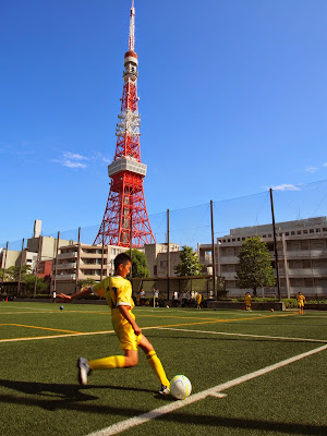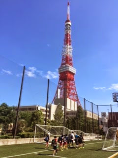 東京タワーに見守られながら素晴らしい人工芝のグランドでの戦いでしたが雷はガンガン雨風は強くなり1時間の中断(泣)