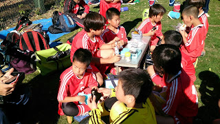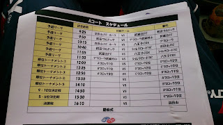さてその2チームとの予選は、ここのところ見たこともないくらい気持ちの入ったゲームになりました。ひろながのグラウンドを広くカバーした献身的なプレイ。体力のあるうちのこうしろうのサイドへの開きからのチャンスメイク、きょうやの相手を恐れずに体をはったボールの競い合い、集中しているときのしんすけの体をはったボールキープ、サイドからのアタックにみがきのかかってきたたいしょう、右サイドでも左サイドでも安定しているそらなどたくさんのグッドプレイを見ることができました。