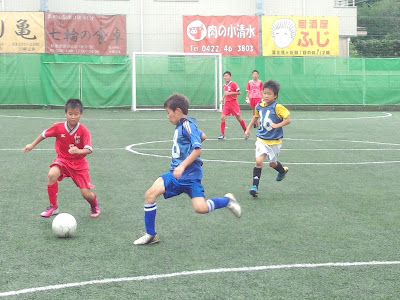 1チームキャンセルになったため、SHICHIRINさんと10分ハーフで、4試合やらせていただきました。相手のSHICHIRINのみんなはボール捌きが非常に上手く、ボールを奪ういい練習になったと思います。5人制なのでみんなサボる事もできなかったのでスタミナUPにも繋がったと思います。攻撃面でも今日はボールを奪うと連動してみんなが動き出す場面も見られました。5年生の試合はまだまだ続きます。暑さに負けず頑張って、一回りも二回りも成長しよう!!