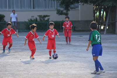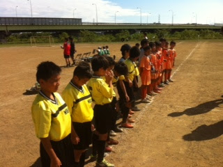予選リーグ初戦、府中3FC戦は厳しい暑さの中でしたが、エルシエロで活躍した、4年生FWしょうが再び切り返しからの左足シュートで先制。その後追加点をあげ勝利をおさめました。