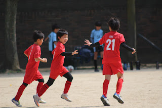 四年生のみんなはしっかり球際で戦える反面、奪った後の攻撃のオプションをたくさん持って欲しかったので、サイドの裏抜け、DFのサポート、オーバーラップ、ロングシュートなどリスクを負って前で数的優位を作っていこうとお話ししました。もともと中盤でタメは作れる+パスも出せるので、あとは裏に飛び出す勇気とサポートの意識ですね。