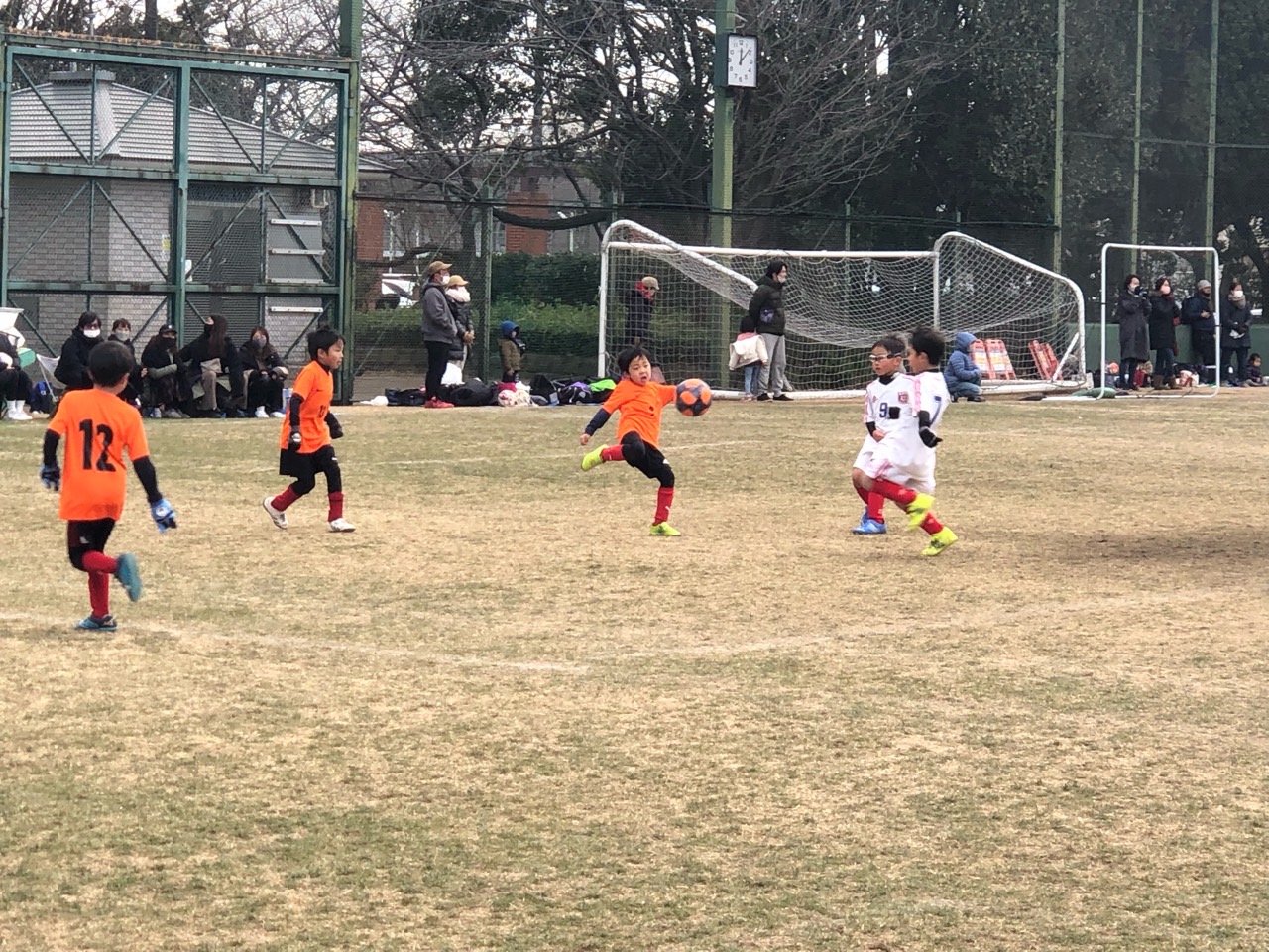 内容の方は引き続き『自分でやりきる』だったけど、みんなどうだったかな?ボールをもったら顔を上げて、相手がプレスに来ても逃げずに自分で仕掛けようという子が増えてきたよね。横にボールをスライドさせたり、ボディフェイント入れてみたりと最近の練習でがんばっていることをチャレンジしている子が多くいてコーチも嬉しかったよ。ゴール前のフィニッシュの部分では、自分たちの判断でパスやミドルシュートもあり、楽しくサッカーが出来ていたと思います。でも負けた試合では圧倒的な技術の差を感じたよね。また来週から練習頑張ろう。子供たちにとっても、コーチにとっても収穫の多い1日になりました。