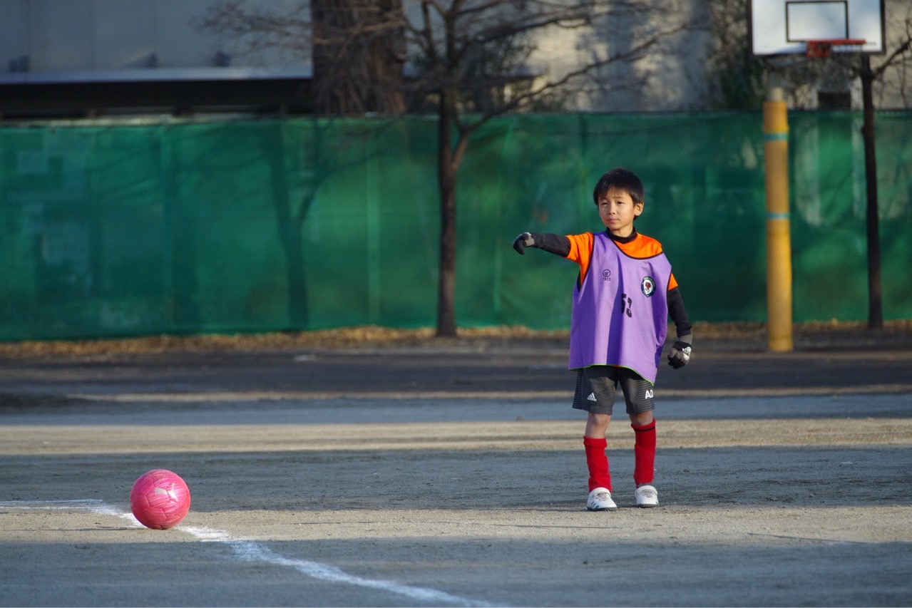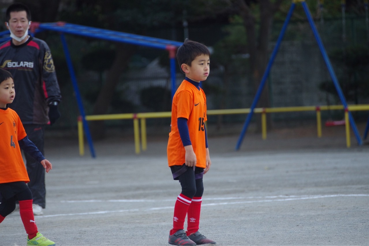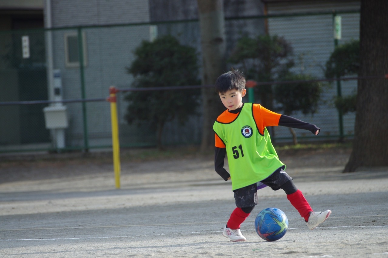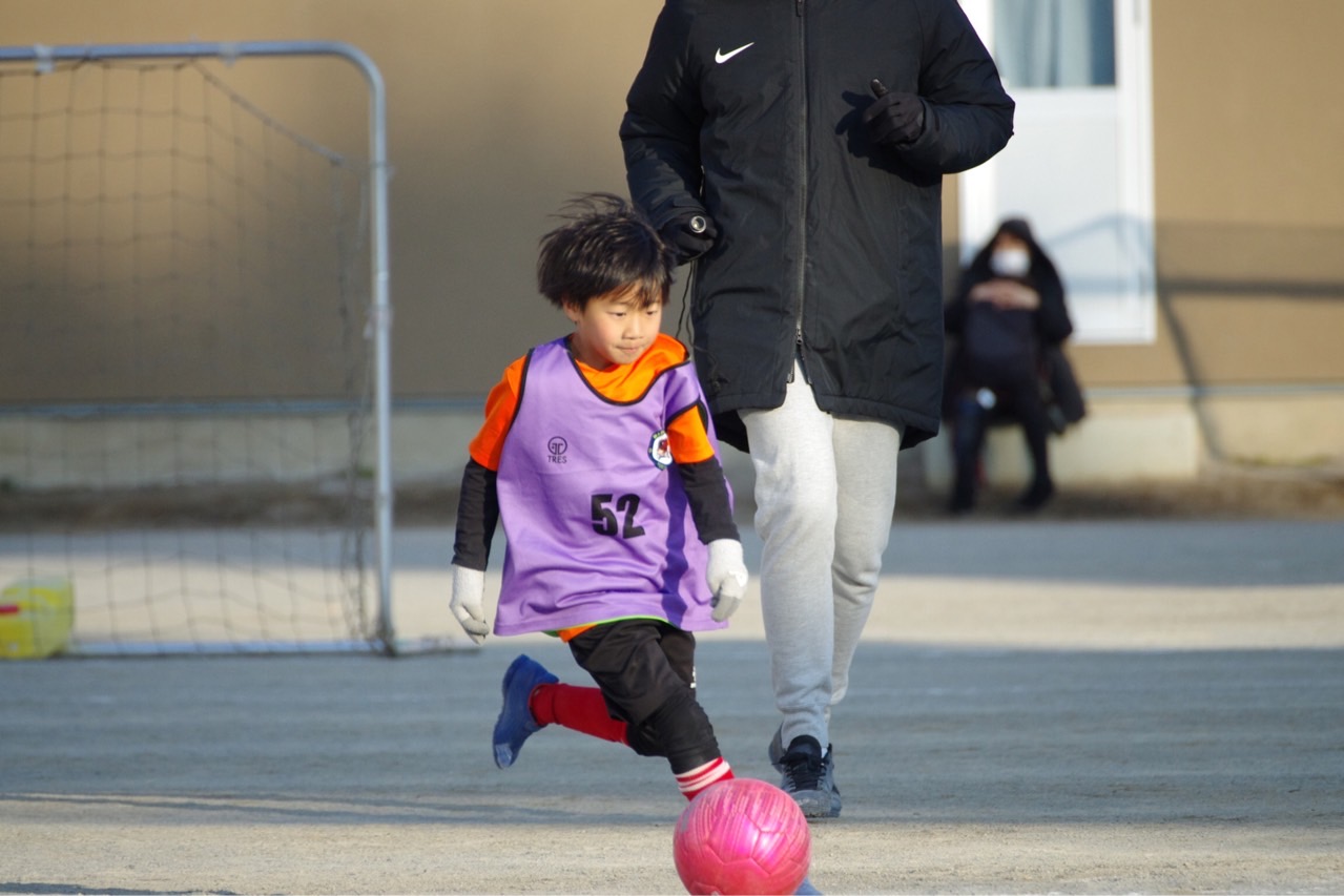 最近1年生はプレスが来るとすぐにパス(適当キック)に逃げてしまう子が多くなっていました。加えて、ゴールもボール奪取も「誰かが何とかしてくれるだろう」という感じも出てきたので、これをテーマに設定。自分でボールを奪って、自分でゴールに向かって仕掛けるという、非常にシンプルなテーマが良かったのか、最初からみんな全力でアグレッシブにプレーが出来ていたと思います。いつも以上に戦う姿勢が見られ、みんなも手ごたえをつかんだように感じました。ボールへのこだわりの成果もあり、失点も少なくすんだね。2022年は当分この感じで進んでいきましょう!応援に来たパパママも、戦うわが子を見て胸が熱くなったと思います笑
