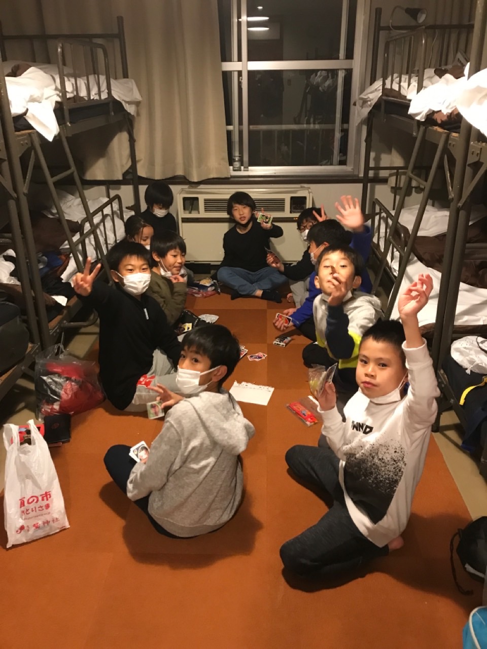 ご飯の後は部屋別のゲーム大会、星空鑑賞会を実施しました。冬の星空は本当にキレイで、流れ星を見れた子もいたそうです(何かお願いしたかな?)
