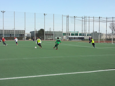 本日のテーマは裏をとる意識を持つことでした。てんのセットプレーからえいとの裏への抜け出しは見事でしたね。はるきとこうしろうの2トップではこうしろうがボールをもった瞬間にはるきが裏を常に狙っていて、息のある面白さを感じさせてくれました。あとはトップの選手の裏の狙い方が単調なので、横の動きを一回入れられると良いかな。