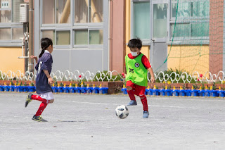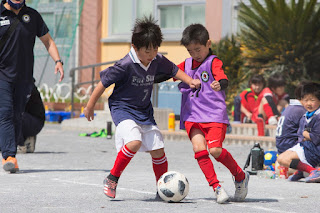 さて、1年生チームはこの3か月、ドリブル・パス・シュートなど非接触型の練習を中心に行い、技術の底上げを図ってきました。本日の試合全体から、インサイドキックやスペースへの正確なパスなど、各々の選手達の成長を見ることができました。